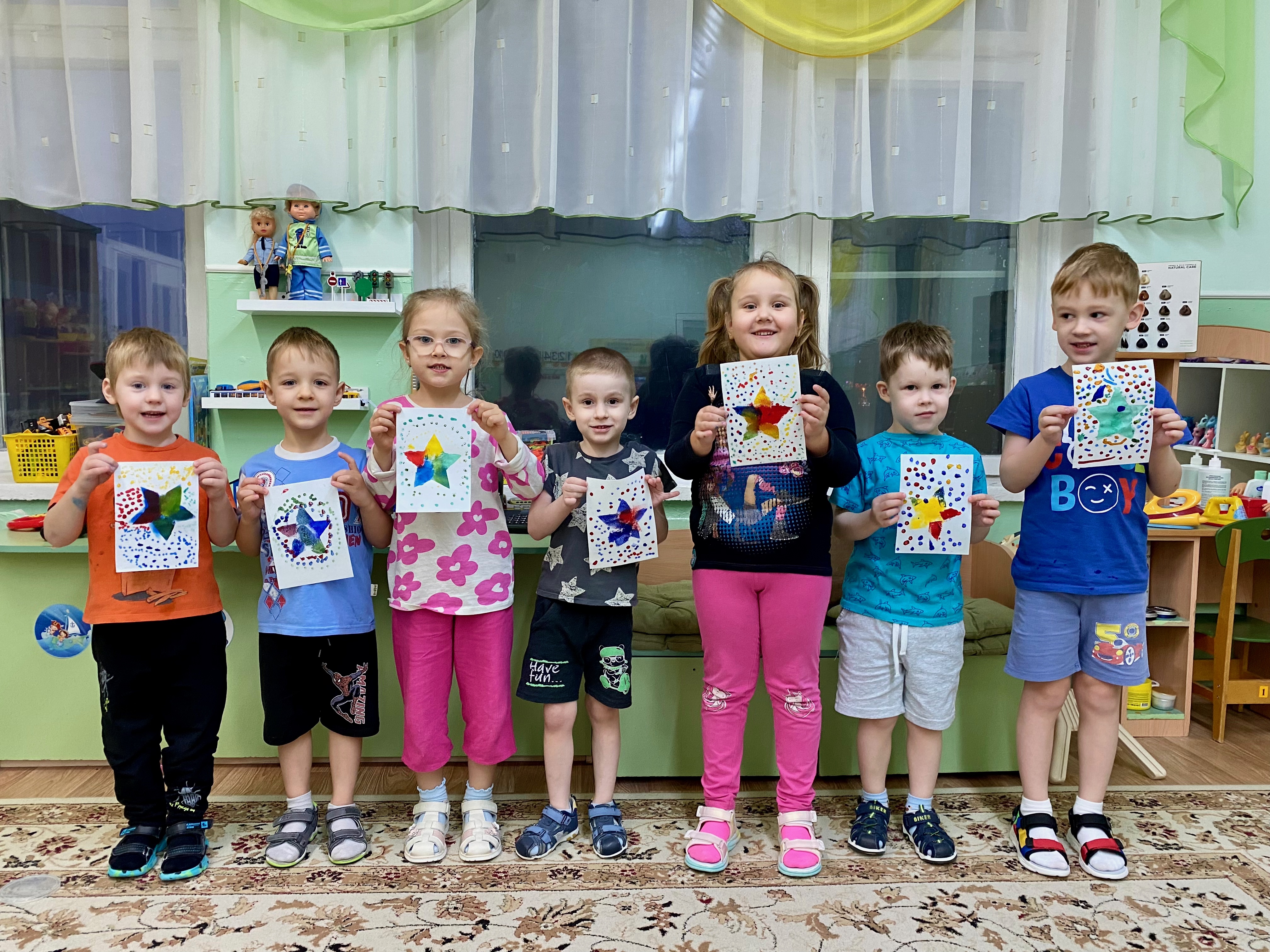 К празднику Нового года темой занятия стали волшебные звёзды — простые формы превратились в сияющие настенные украшения и открытки. Освоение техники способствовало развитию тактильного восприятия, чувства цвета и пространственного мышления у детей, а готовые работы отлично украсили интерьер к празднику.